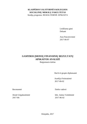 3.3 ŽŪB "Aušra" finansinių rezultatų apskaita 33